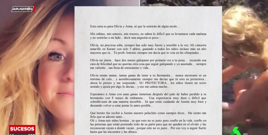 "Olivia, tenías tantas ganas de tener a tu hermanita. Nunca mostraste celos y siempre me decías que tú eras su protectora. Esperamos a Anna con unas ganas inmensas después del palo de haber perdido a tu hermanito con ocho meses de embarazo. Una experiencia muy dura que sobrellevaste de una manera increíble", ha escrito en esta carta.
