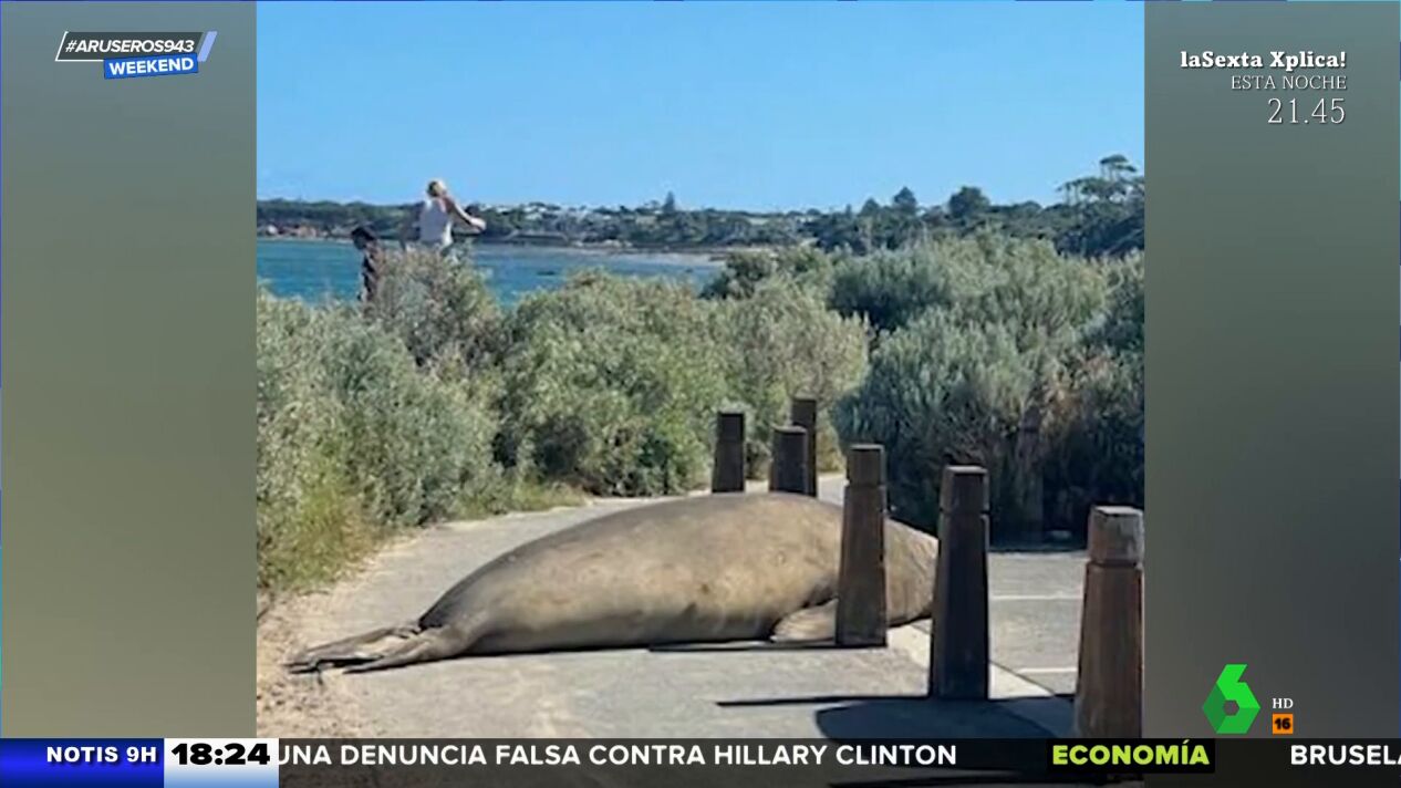 Una foca gigante ha sorprendido este sábado a unos bañistas en unas de las playas más concurridas Australia. Según ha informado Alfonso Arús, el animal ha salido del agua y ha empezado a caminar por las calles cercanas a la costa.