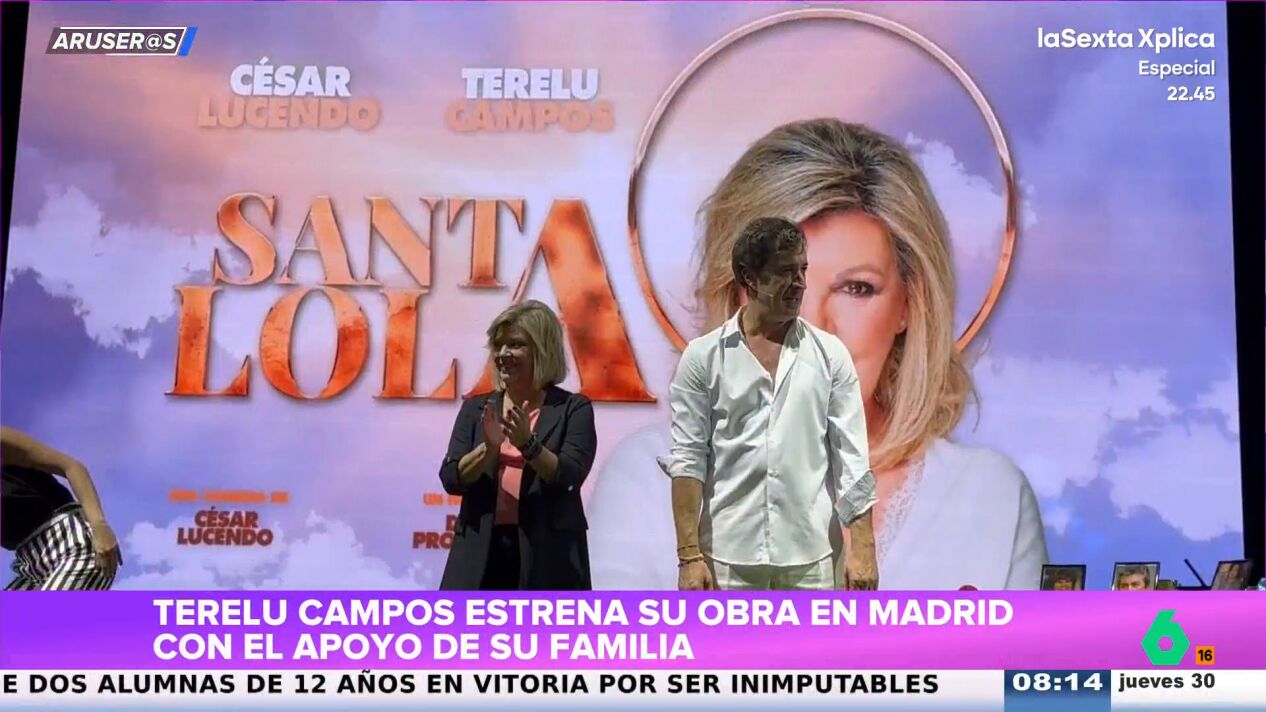 Terelu Campos ha estrenado su obra de teatro, 'Santa Lola', en Madrid con el apoyo de su familia. "Veíamos a Alejandra Rubio con su hijo, cosa que nos ha sorprendido", destaca Tatiana Arús, que explica que también se encontraba su pareja, Carlo Costanzia, hijo de Mar Flores y yerno de Terelu.