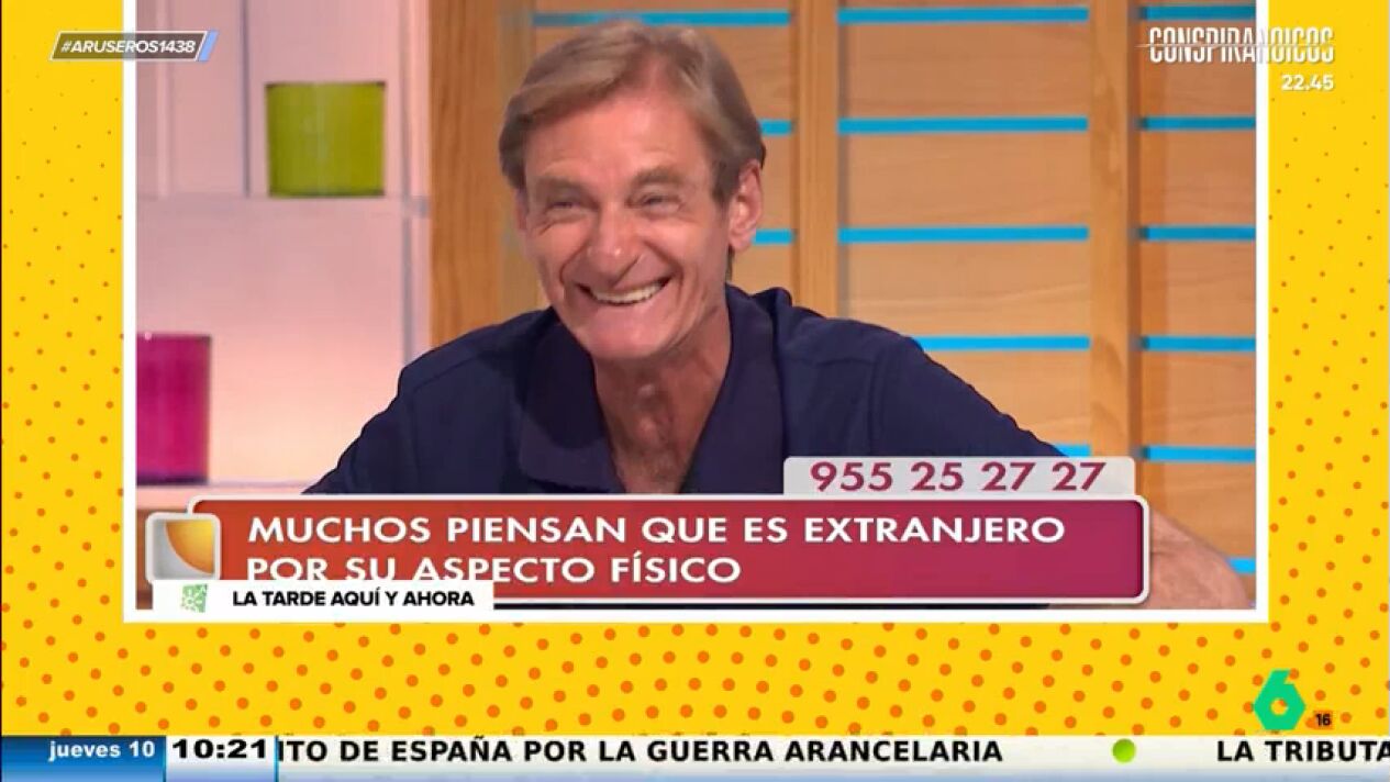 El invitado al programa de Juan y Medio reconoce que "muchos piensan que es extranjero por su aspecto físico". "¡Y soy español!", dice indignado, a lo que el presentador responde: "Es verdad que tienes cara de arancel".