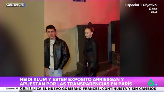 Heidi Klum y Ester Expósito han arriesgado y apostado por las transparencias en la Semana de la Moda de París. "Lo de Heidi Klum es una transparencia total", destaca Alfonso Arús en el plató, donde Tatiana Arús afirma que la modelo "deja muy poco a la imaginación".