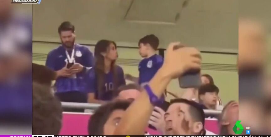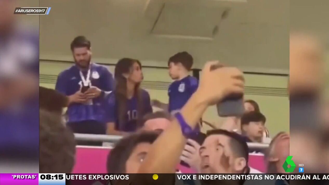El Mundial de Qatar nos está regalando imágenes de lo más peculiares, más allá de las que nos ofrecen los partidos de fútbol en sí. Una de las más llamativas de este fin de semana podemos presenciarla en este vídeo de Aruser@s, en el que vemos al pequeño Mateo Messi lanzando una golosina que llevaba en la boca a la afición australiana aprovechando que su madre, Antonella Roccuzzo, se despistó durante un instante.