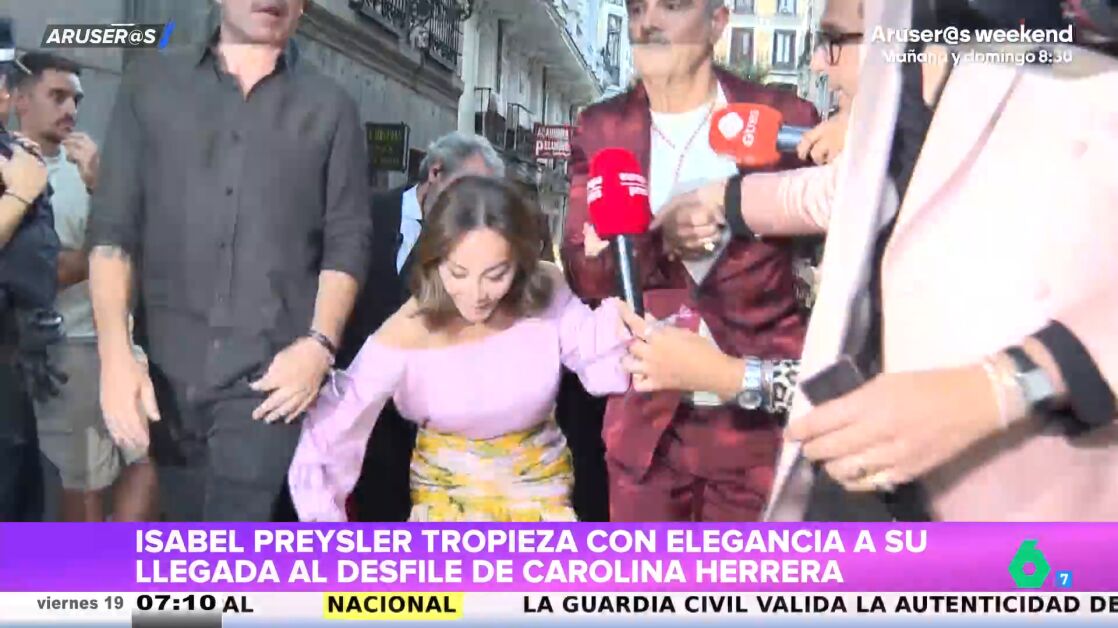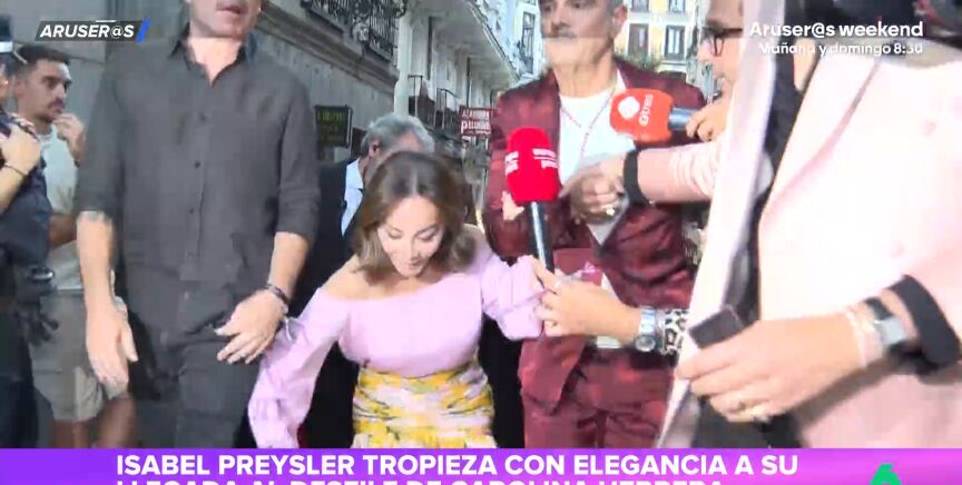 El tropiezo de Isabel Preysler a su llegada al desfile de Carolina Herrera en la Semana de la Moda de Madrid