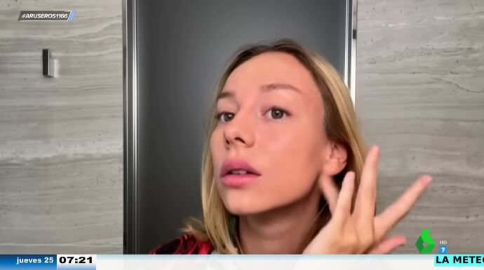 "Toda persona que se precie va hablando a cámara mientras va tapándose las imperfecciones", destaca Alfonso Arús, que destaca que "las famosas como Ester Expósito también". Y es que el presentador enseña en el plató el vídeo viral de la actriz de 'Élite' realizando un tutorial de belleza explicando cuáles son sus claves para maquillarse.
