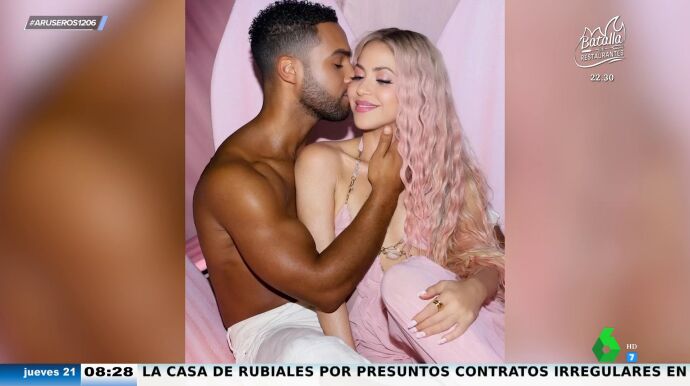 "Shakira ha revolucionado las redes sociales posando con un hombre en actitud muy cómplice", destaca Alfonso Arús en el plató de Aruser@s, donde Tatiana Arús explica que "se trata de un actor que forma parte del videoclip que estrena junto a Cardi B". Tras ver las imágenes, Alba Gutiérrez afirma que cree que se trata del actor que interpreta al novio londinense de Emily en la serie 'Emily in Paris'.