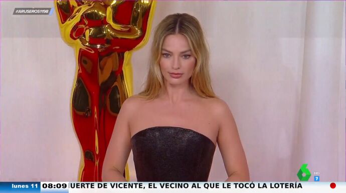 Por su parte, Margot Robbie dio otra de las sorpresas al dejar de lado el color rosa, una tendencia que llevaba eligiendo en todos los Premios como guiño a su película, Barbie, y apostar también por el color negro. Con un vestido espectacular de Versace, muchos dicen que el vestido sería un mensaje de que "está de luto por la falta de nominaciones a Barbie", destaca Tatiana Arús, que afirma que "todo el mundo dice que se parece al vestido que llevó la princesa Diana": "Dicen que es el vestido de la venganza".