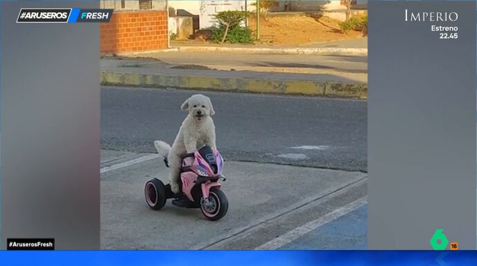 Un perro motero que ha enamorado por completo a los colaboradores del programa. Y es que la combinación de la moto de juguete y el perro es simplemente adorable.