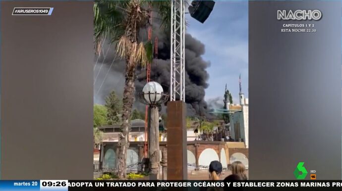 En estas imágenes emitidas en Aruser@s y grabadas por uno de los usuarios de Europa Park, somos testigos del gran incendio que se ha originado en elparque temático alemán (uno de los más grandes de Europa) y que ha destrozado el área dedicada a España.