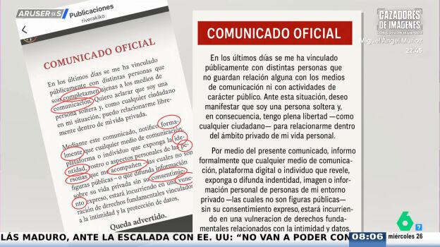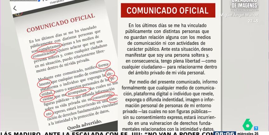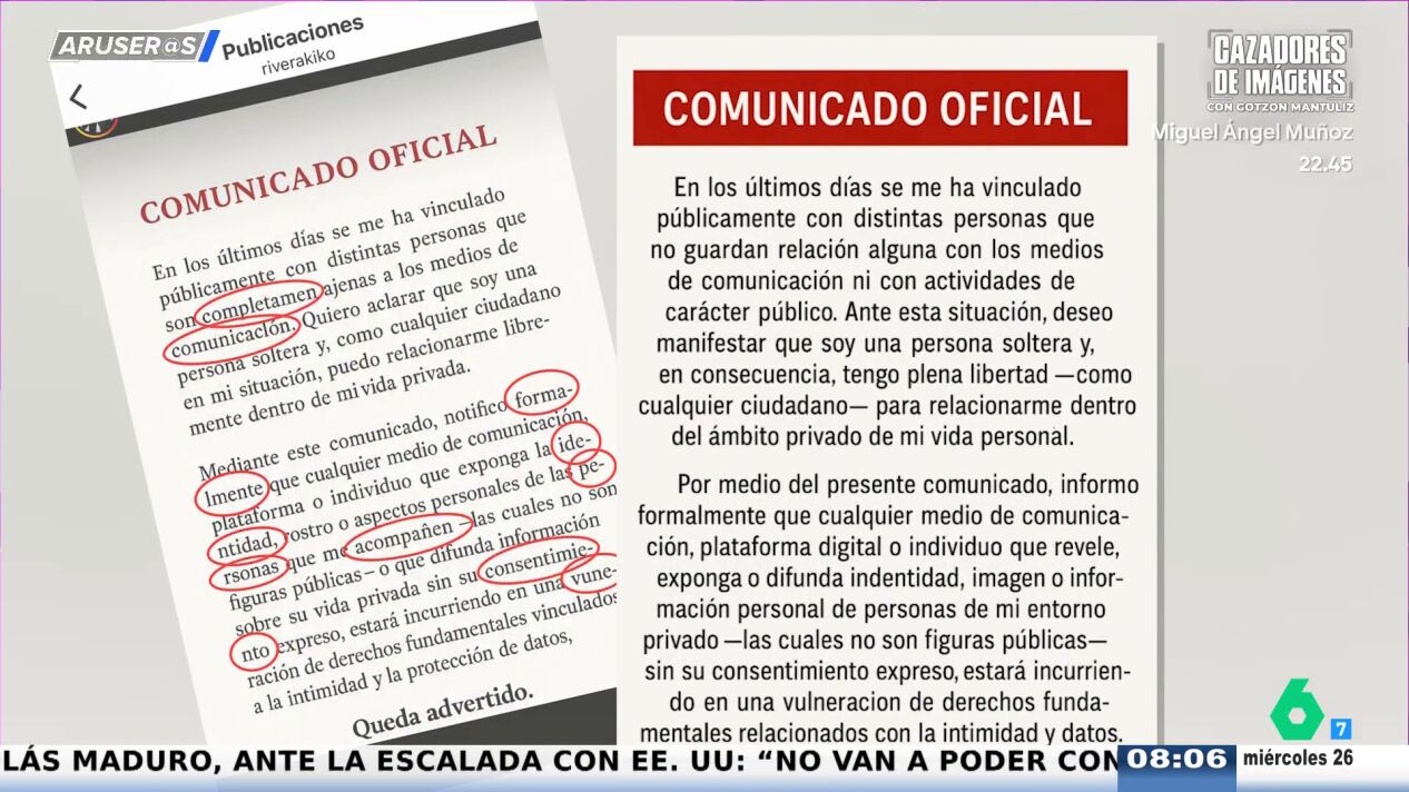 Por otro lado, Tatiana Arús explica que en el comunicado Kiko Rivera explica que está soltero tras las informaciones de que podría estar empezando a salir con una nueva mujer: "Pide que preserven la identidad de esta chica, que es arquitecta y tienes dos carreras".