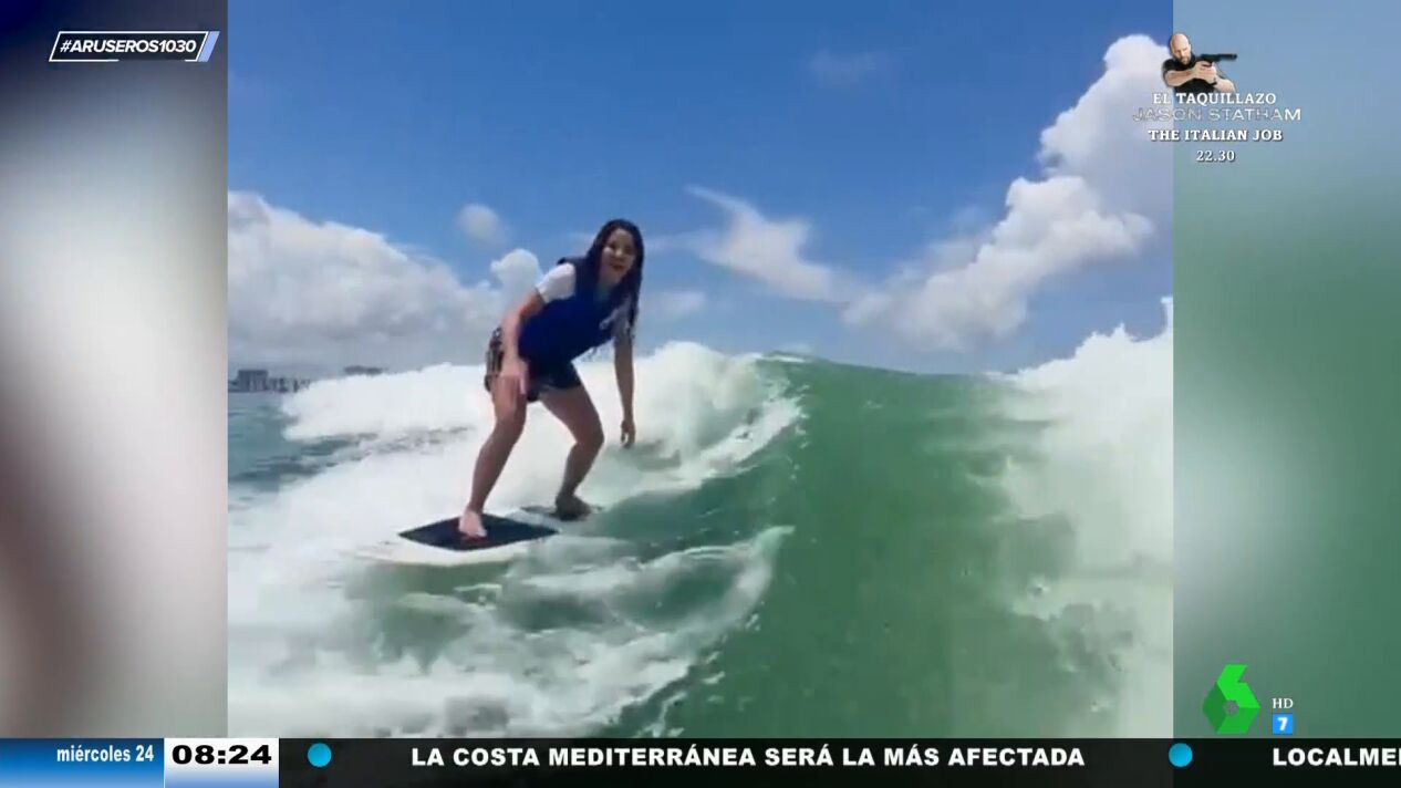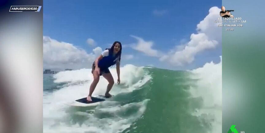 Tatiana Arús enseña en el plató de Aruser@s un vídeo que Shakira ha compartido en sus redes sociales practicando surf. En él, la artista colombiana demuestra el dominio que tiene sobre la tabla. "Lo hace francamente bien", destacan en Aruser@s.