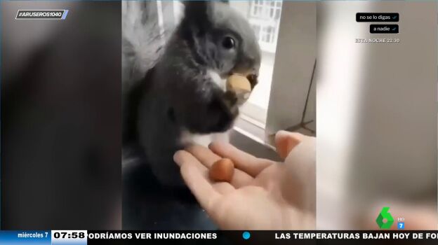 En este vídeo viral somos testigos de un momento insólito que dejará a más de uno con la boca abierta. Una ardilla llama a una ventana y espera pacientemente a que quien vive en la casa le abra para poder entrar. Su objetivo no es otro que hacer una transacción: el animal le ofrece semillas del bosque recién recogidas a cambio de unas almendras a la chica.