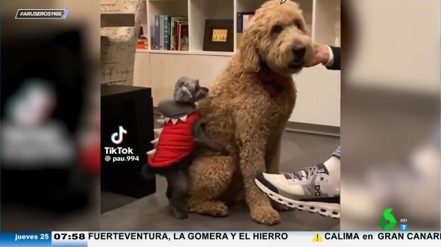 "Pequeño tamaño, pero gran autoestima", resume este vídeo Alba Gutiérrez con cinco palabras. "Igual le han puesto una música y está perreando, porque otra cosa me da la sensación de que no", comenta Angie Cárdenas.