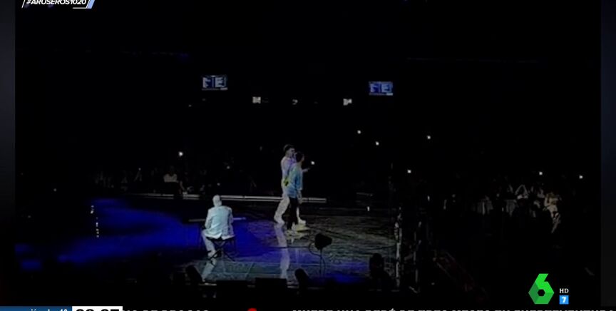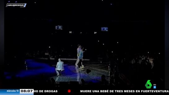"Sin ningún tipo de reparo, el cantante detiene el concierto y da paso al chico, que sube al escenario", explica Tatiana Arús al mostrar el vídeo, en el que se puede ver cómo el chico hace subir a su chica al escenario para pedirle matrimonio. La mujer, emocionada, dice que sí.