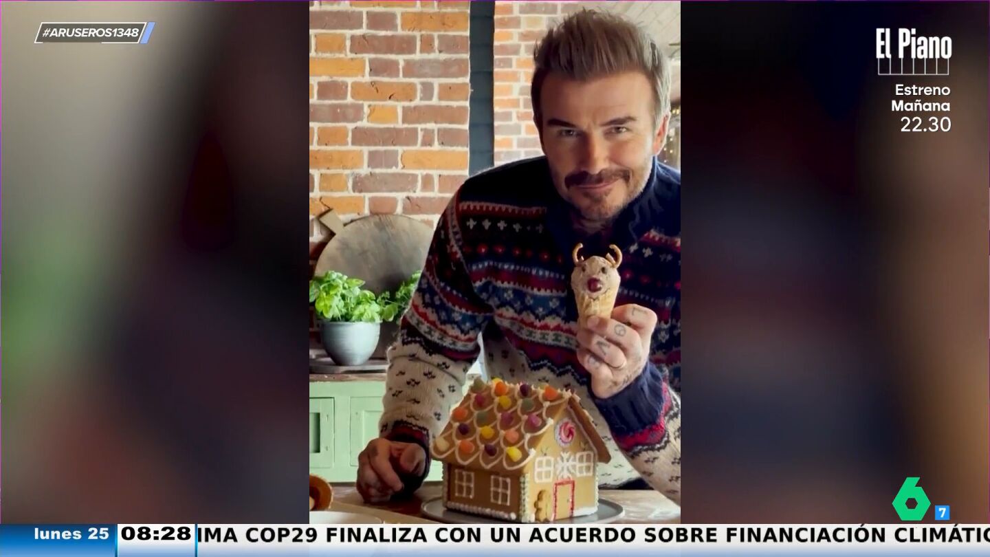"David Beckham ha demostrado que no hay nada que se le resista", destaca Alfonso Arús, que explica en el plató de Aruser@s que el exdeportista está metido en las galletas navideñas. Y es que, como destaca Tatiana Arús, a Beckham "se le da bien la jardinería, cuidar a sus gallinas, todo el tema gastronómico... y ahora vemos cómo realiza galletas de jengibre". Además, David Beckham también ha hecho "una casita de jengibre y un reno con un cucurucho y la galleta de helado".