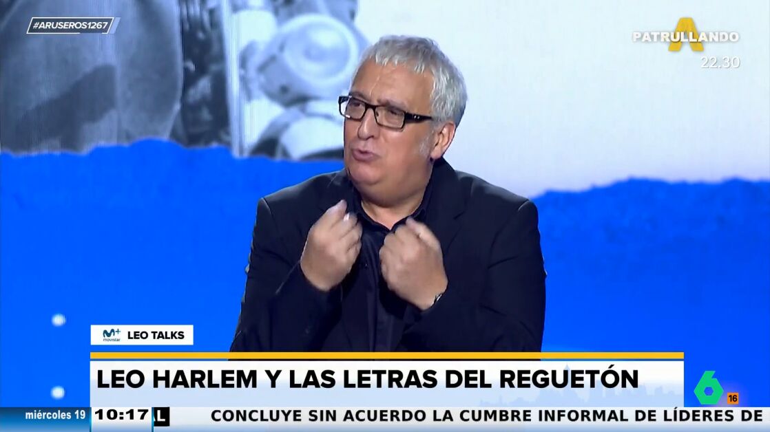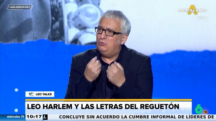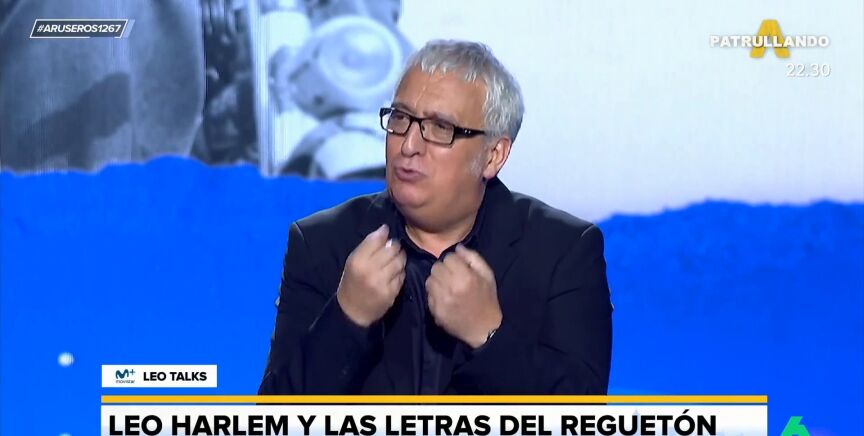 "Hay toda una cultura en torno al reggaeton que no conocemos, pero que cuando alguien joven te lo explica, empiezas a entender sus matices", destaca Leo Harlem, que realiza al público una irónica y graciosa pregunta: "¿Vosotros sabíais que cantan en español?". Desde el plató de Aruser@s dan la razón al humorista afirmando que el reggaeton "parece otro idioma".