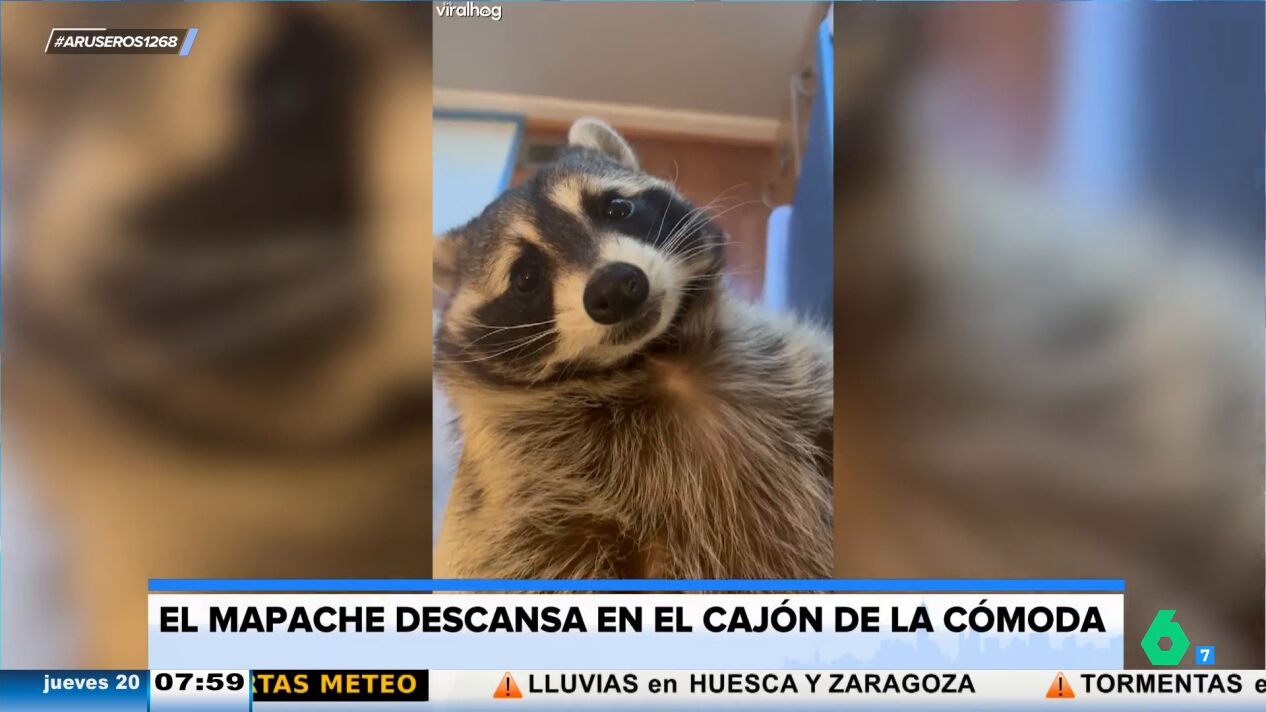 "Es sensacional", destacaba Alfonso Arús antes de reproducir el vídeo principal de esta noticia. En las imágenes se puede ver a un mapache que establece su cama en un cajón de una cómoda. El animal escoge uno que tiene ropa dentro para que le sirva de colchón.