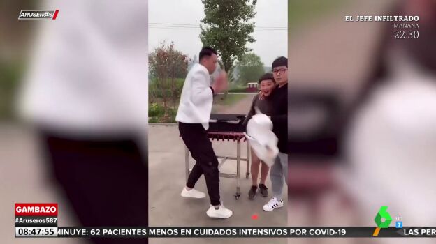 Sin embargo, a este mago se lo estropearon porque cuando se disponía a realizarlo su ayudante sacó a una persona de la caja y descubrió el 'no truco'. Puedes ver el momento en el vídeo superior.