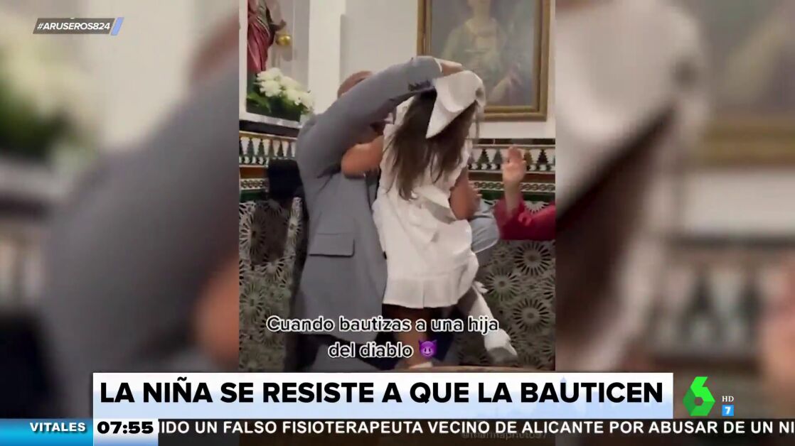 En el día de su bautizo, una niña intentó resistirse a que le echasen el agua. Uno de los asistentes grabó el momento y ahora se ha hecho viral en TikTok.