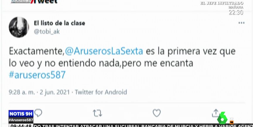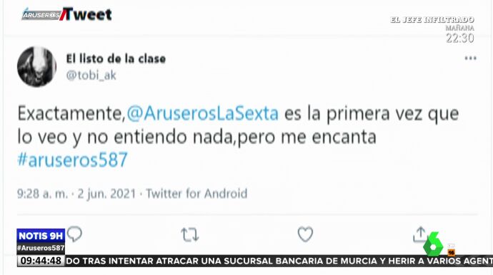 Un usuario de Twitter ha dedicado un surrealista comentario al programa de Aruser@s que el presentador ha leído en directo.