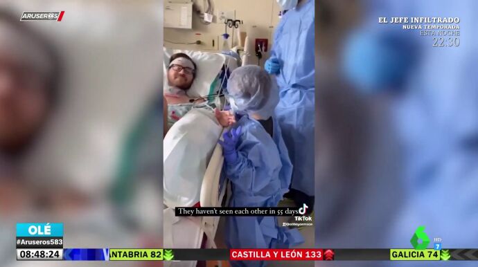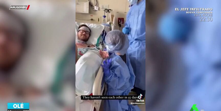 El niño ha podido visitar a su progenitor, ingresado desde hace un tiempo, en un centro hospitalario. Lo ha hecho cubierto con una mascarilla, un gorro y un traje de protección.