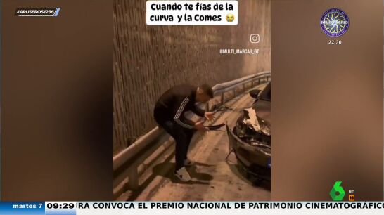 La viva imagen de la frustración: La reacción de este joven al destrozar el morro de su coche