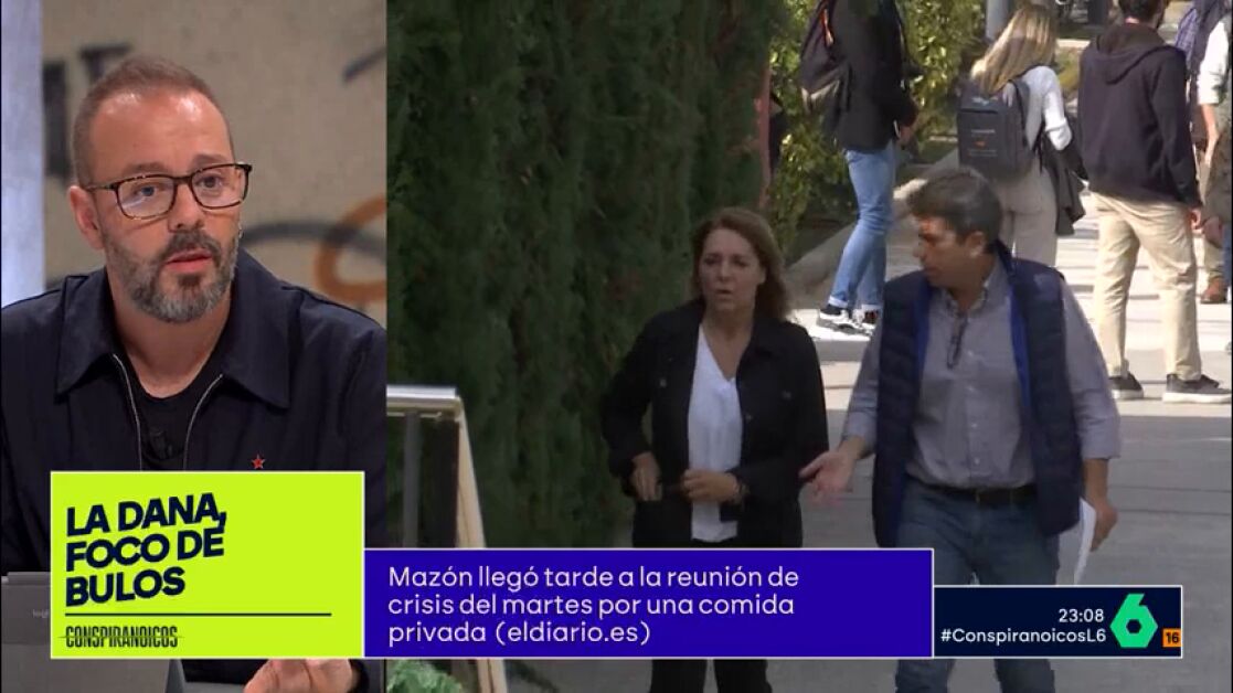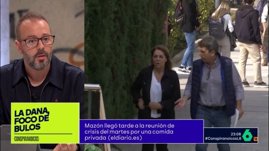 El periodista Antonio Maestre ha desvelado en Conspiranoicos que el día 29 de octubre, en las horas previas antes de la tragedia marcada por la DANA, el presidente de la Generalitat Valenciana, Carlos Mazón, mantuvo una reunión con "agentes sociales y sindicatos por motivos de los presupuestos". En ella, según ha contado Maestre, "miembros de la Generalitat Valenciana se burlaron, ironizaron y tildaron de exagerada la decisión de la universidad de suspender las clases y mandar a sus alumnos a casa".