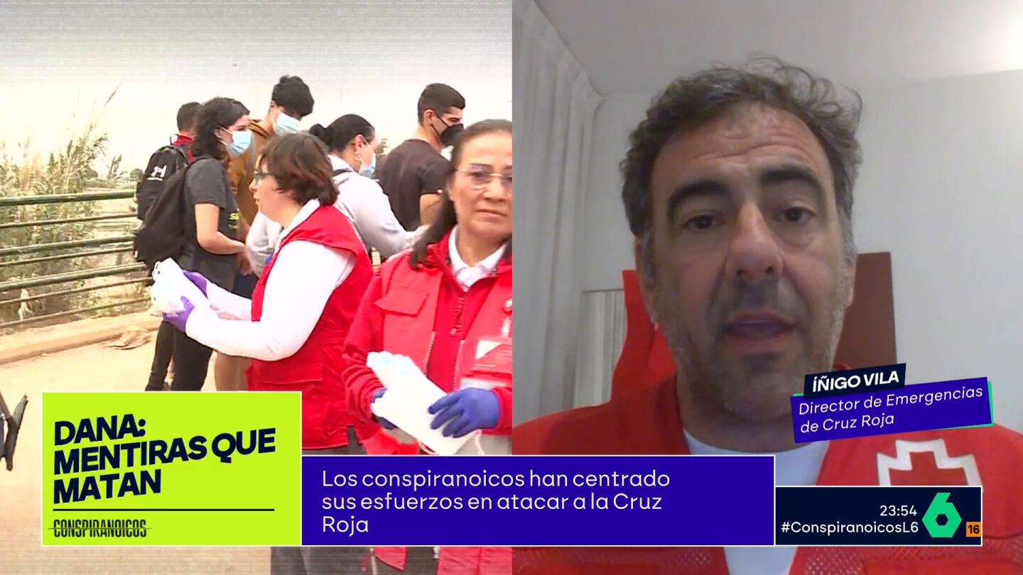Íñigo Vela, director de Emergencias de Cruz Roja, ha respondido este jueves en una entrevista en Conspiranoicos desmintiendo los bulos que se generaron sobre la institución humanitaria durante la DANA. Vela ha asegurado que la organización es "transparente" y pese a la desinformación "van a seguir trabajando".