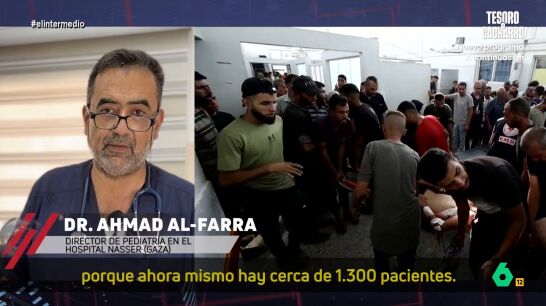 Para conocer de primera mano la situación de la Franja de Gaza, El Intermedio ha contactado con Ahmad Al-Farra, jefe de pediatría del Hospital Nasser. "Allí van todos los niños que sufren los bombardeos y que están en una situación de desnutrición", indica Andrea Ropero.