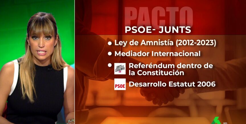 En este vídeo de El Intermedio, Sandra Sabatés analiza los aspectos más destacados del acuerdo firmado hoy entre PSOE y Junts para la investidura de Pedro Sánchez, entre ellos la ley de amnistía y los puntos discordantes entre ambos partidos.