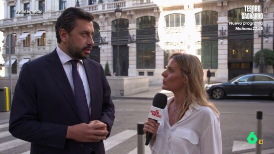 Andrea Ropero acude a un desayuno informativo de José Luis Martínez-Almeida junto a Alberto Núñez Feijóo en plena tensión con el Gobierno por la polémica sobre La Vuelta a España. Allí Andrea Ropero entrevista a Carlos Díaz-Pache, portavoz del PP en la Asamblea de Madrid.