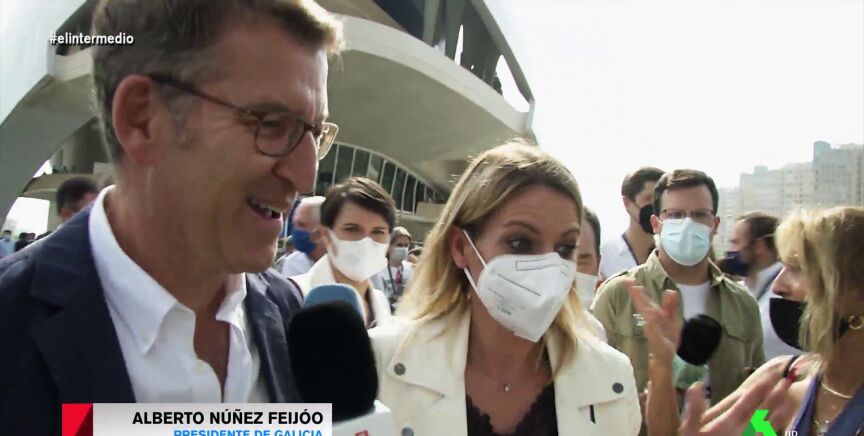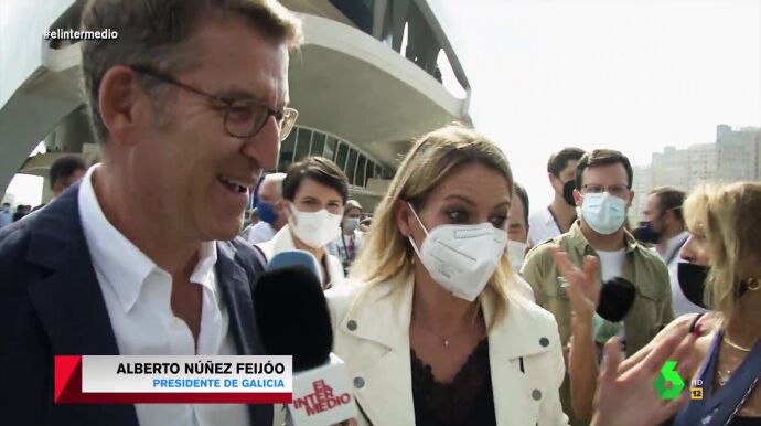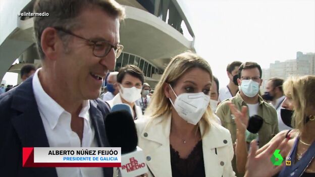 El líder del PP gallego, Alberto Núñez Feijóo, acudió a la cita del PP en Valencia por la Convención Nacional del partido. Un encuentro que no se ha perdido la reportera de El Intermedio Andrea Ropero, que logró hablar con el presidente gallego.