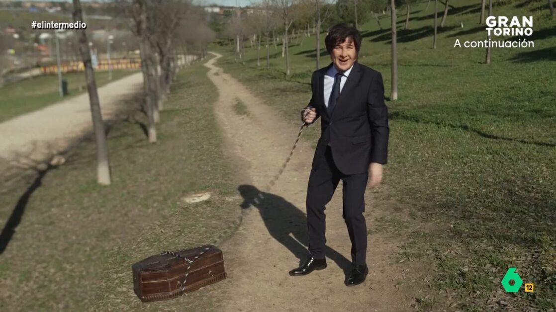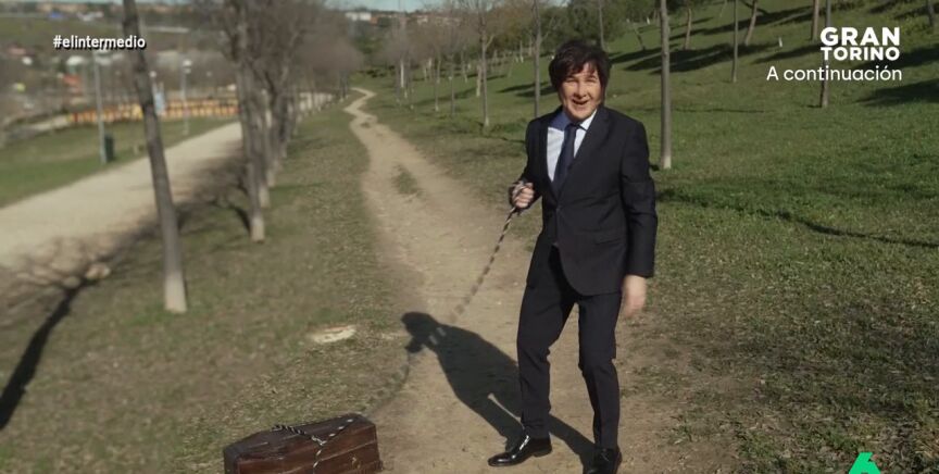 Además, mantenía una reunión con sus consejeros, un grupo de perros, mientras recordaba a su difunto 'Conan', al que paseaba en su ataúd. También compartía sus conversaciones con Trump, Bolsonaro, Meloni, Orban o "el pibe este con barba y pecho palomo": "Ya conocéis el dicho: 'Si tu país está pasando una mala racha, vota facha'", apuntaba 'Milei'.