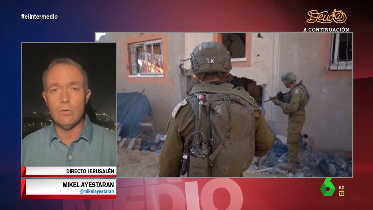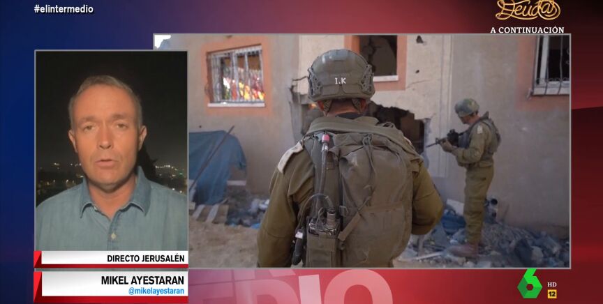 Mikel Ayestaran conecta en directo con el plató de El Intermedio para contar la última hora de la Franja de Gaza. "Desde el punto de vista militar estamos en un día importante", afirma el corresponsal de guerra, que destaca que "tanto los palestinos como los israelíes han confirmado que las tropas israelíes han conseguido cercar Gaza".