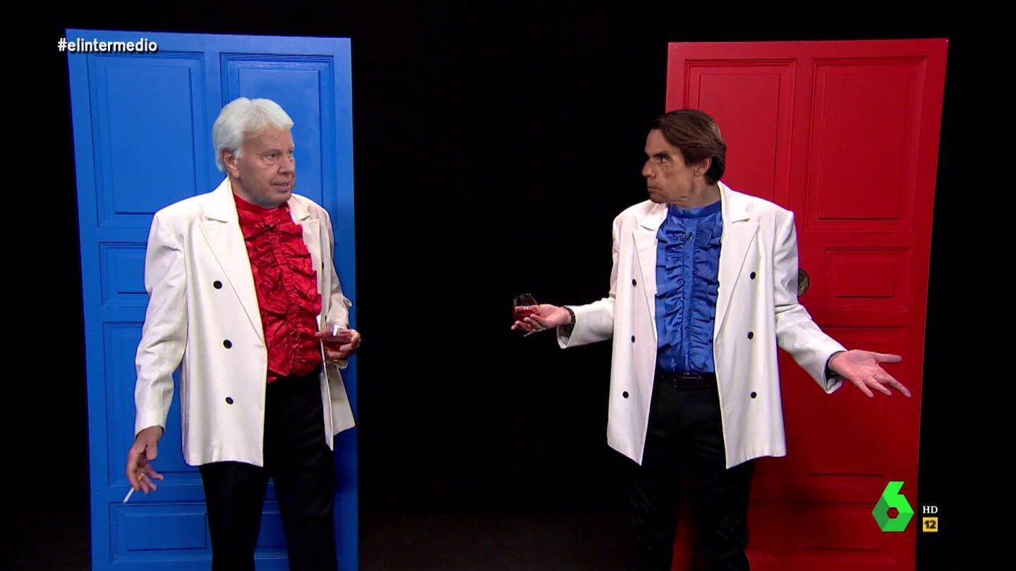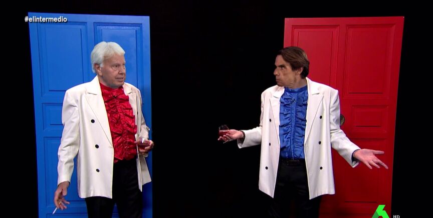 Aznarito y Felipónvuelven a El Intermedio. El primero afirma que estamos en un año "estupendo", en "el beluga de los años", porque estamos en año electoral. "Eso es mejor que un mundial, es lo más grande", asegura Felipón, y admite estar contento porque le gustan más las elecciones que "un micro abierto para criticar a Pedro Sánchez".