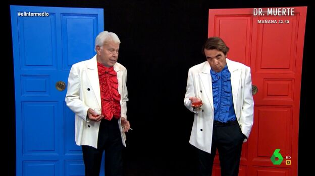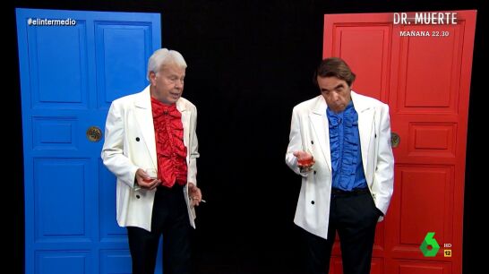 'Aznarito' y 'Felipón' llegan al plató de El Intermedio para hablar del "tema de la Inteligencia Artificial". "Estoy preocupadísimo con ese asunto, creo que va a ser el fin de la Humanidad", destaca 'Felipón', que destaca que "es como la Tercera Guerra Mundial o unas elecciones en julio". Por su parte, Aznarito destaca que a él le encantan la tecnología que le hace la vida más fácil.