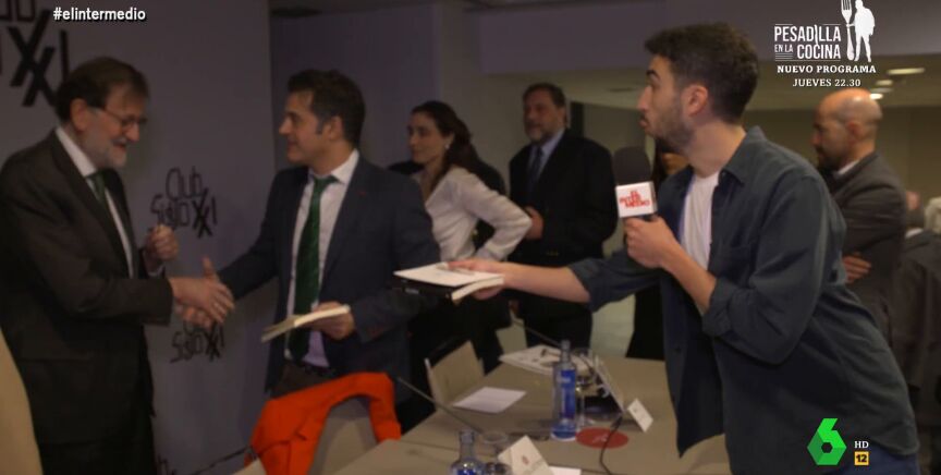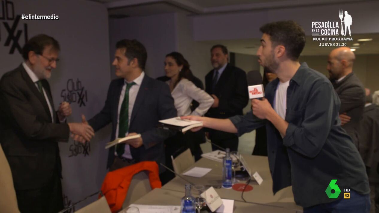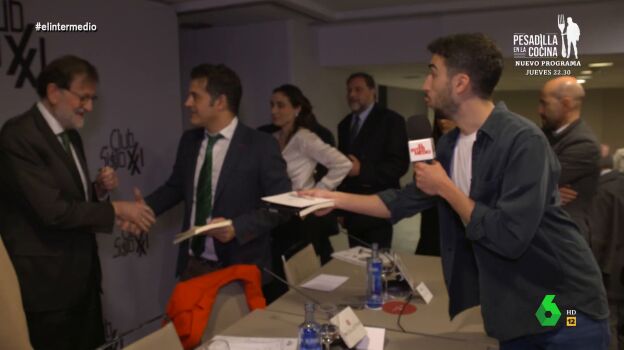 Incluso, el reportero de El Intermedio intenta que el expresidente del Gobierno se lo firme, pero Mariano Rajoy hasta en dos ocasiones le evita. Primero a su pregunta sobre el fútbol y el Real Madrid y después cuando, directamente, Isma Juárez se acerca a él con el libro. Rajoy, que le mira directamente varias veces, hace como que no le ve y le hace varias cobras al reportero, que le extiende el libro mientras el expresidente da vueltas hacia un lado y otro buscando cómo salir.