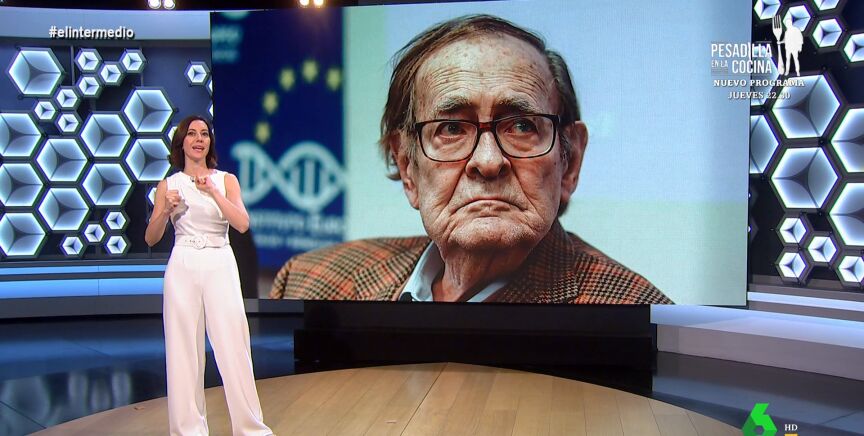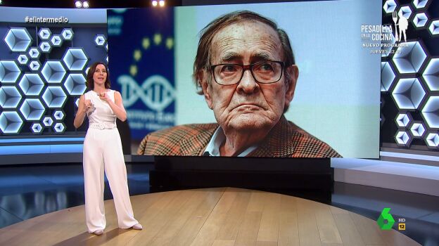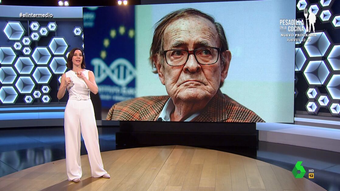 Cristina Gallego analiza en el plató de El Intermedio a la "nueva perla de la cantera de Vox": Ramón Tamames. "Él tiene que ser el que encabece la moción de censura contra Sánchez", destaca la colaboradora, que presenta a Tamames: "Es un viejo ideólogo comunista que comenzó su andadura política en el PCE, más tarde fue uno de los fundadores de IU, pero gracias a dios se curó pronto del virus comunista y se fue al CDS de Adolfo Suárez".