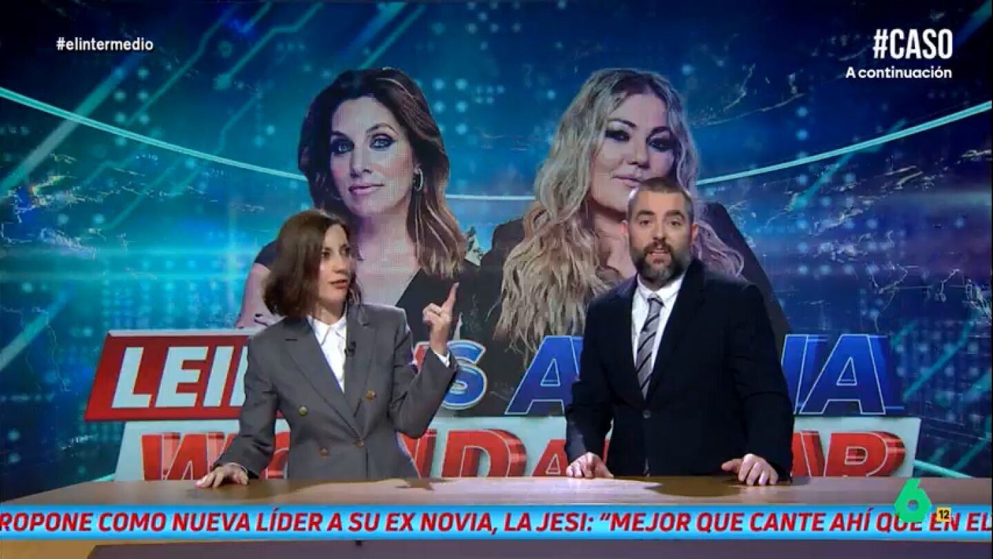 Cristina Gallego y Dani Mateo interrumpen El Intermedio con un especial sobre la 'guerra' entre Amaia Montero y Leire Martínez, excantantes de La Oreja de Van Gogh: "El mundo se rompe en dos", afirma la colaboradora en el vídeo sobre estas líneas.