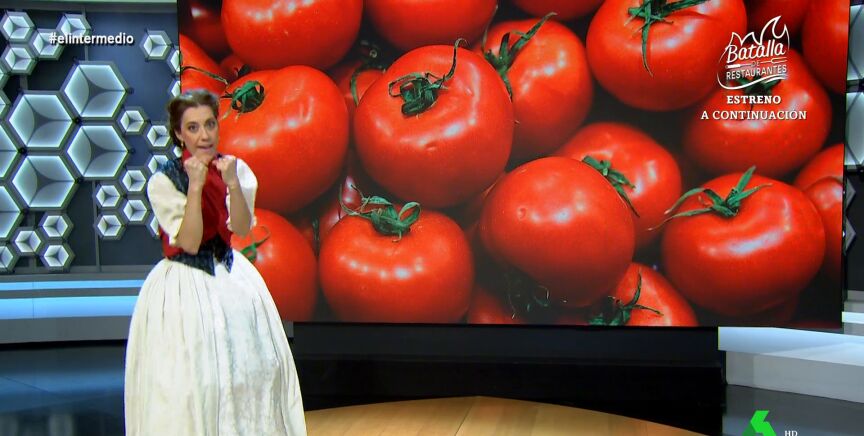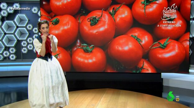 También responde a la exministra francesa de Ecología, Segolene Royal, que asegura que el tomate bio español es "incomible y falso": "Te lavas la boca para hablar de nuestros tomates, Segolene", le comenta Cristina, que le muestra los puños y le asegura que "tengo dos para ti, uno raf y un kumato" y le recuerda que "no tenéis nada que hacer contra nuestros tomates, y si no ¿por qué coño hacéis vichyssoise y no gazpacho?".