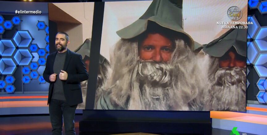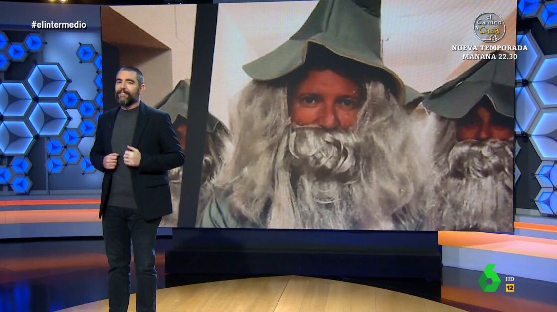 "Se ha disfrazado de Gandalf", comenta Dani, que muestra a Rueda ataviado con una frondosa barba blanca y un sombrero gris en la línea del personaje de 'El señor de los anillos': "Conocíamos a Gandalf el Gris, Gandalf el Blanco y Alfonso Rueda es el Gandalf Azul PP", apunta.