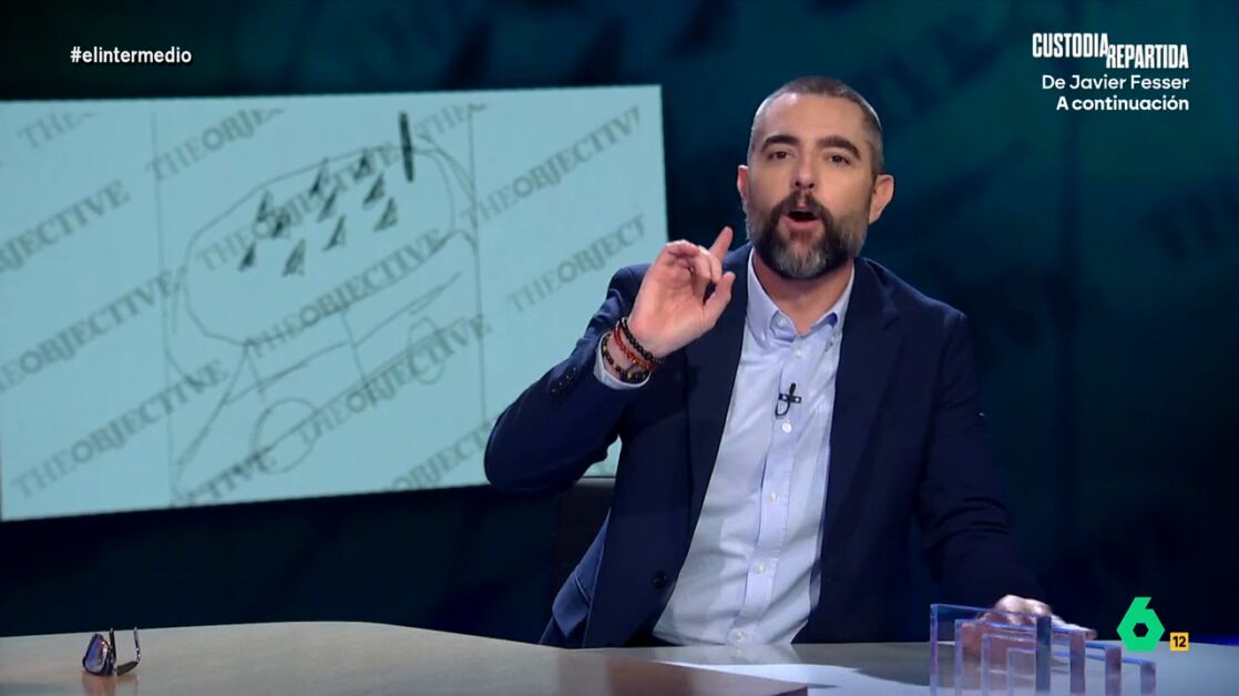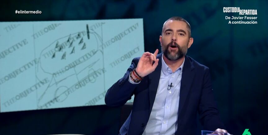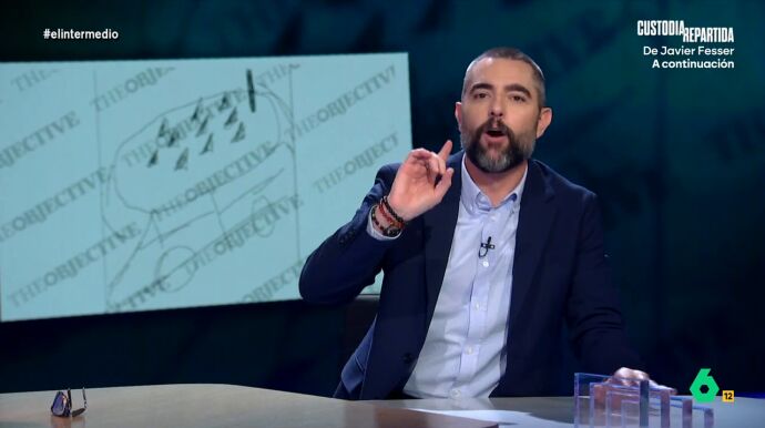 Alberto González Amador habría entregado un dibujo a la policía de un coche que, según él, le vigilaba. Basándose en él, Dani Mateo explica que "mide unos ocho metros, con muchos pinchos en el techo y una antena".