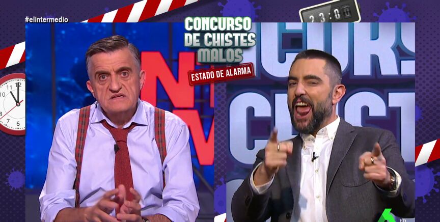 No es la primera vez que ambos se enfrentan compitiendo con chistes malos. "¿Cómo llaman en Castilla y León al toque de queda que impide salir por las noches? Invierno", arrancó El Gran Wyoming, riéndose de su propia gracia en otra ocasión.