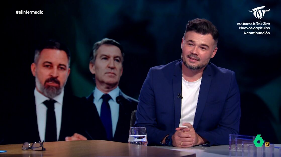 Ante esta situación, Gabriel Rufián alerta de que es muy probable que, si hay elecciones generales, el próximo Gobierno esté compuesto por la derecha y la ultraderecha: "Ojalá que el próximo Gobierno no sea de PP y Vox, pero está de moda ser facha".