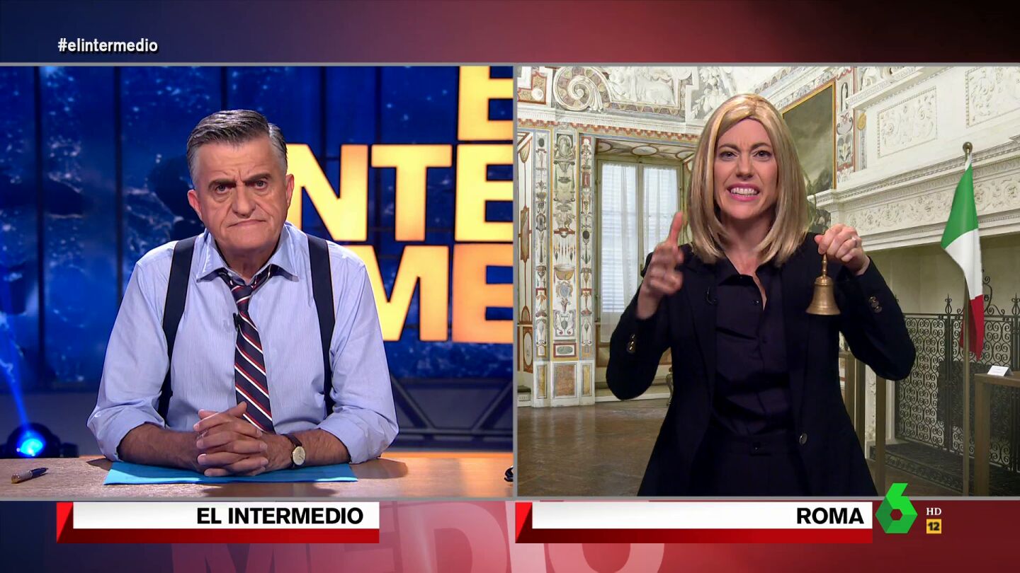 Para conocer cómo está siendo el arranque del Gobierno de Italia, El Intermedio contacta con la mismísima Giorgia Meloni, encarnada una vez más por Cristina Gallego. La 'primera ministra' ha valorado la minoría de mujeres en su Gobierno afirmando que "no me gustan las feminazis, y eso que tienen un nombre bastante prometedor" y ha detallado algunas de sus primeras medidas al frente del Ejecutivo: "Prohibid el aborto, que todo sea 'made in Italy' y mandad los leones del Coliseo a todo el colectivo LGTBIQ".