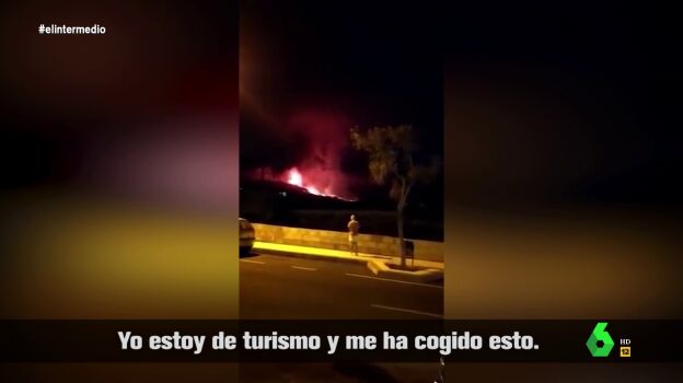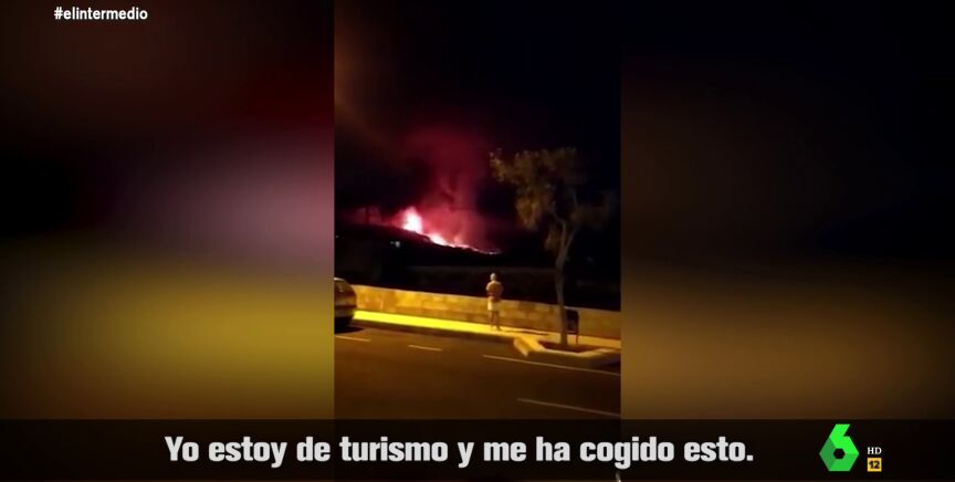 Dani Mateo muestra en El Intermedio el "ejemplo" que están dando algunos habitantes de La Palma de "cómo mantener la calma" tras la erupción del volcán. "¡Mira, unas vacaciones diferentes!", anima una mujer a una turista.