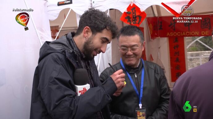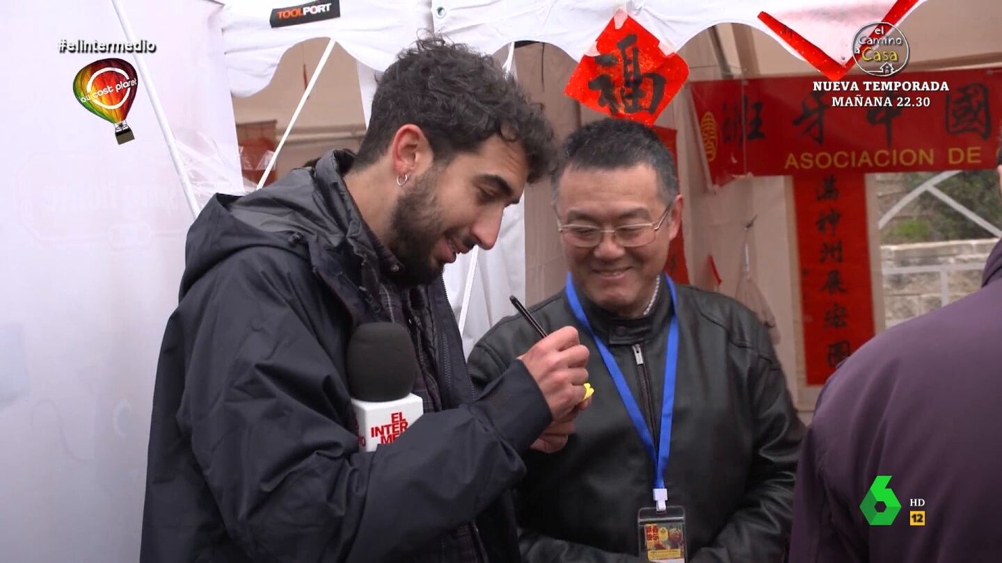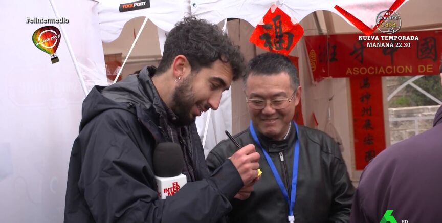 El reportero visita un puesto en el que unos artesanos escriben los nombres en el alfabeto chino. "Escriben el nombre en chino para dar suerte y felicidad", le explica. Isma le dice que ellos tienen la Gran Muralla pero que "nosotros tenemos al Gran Wyoming".