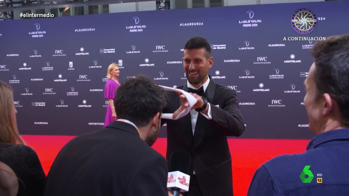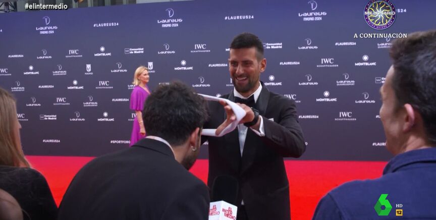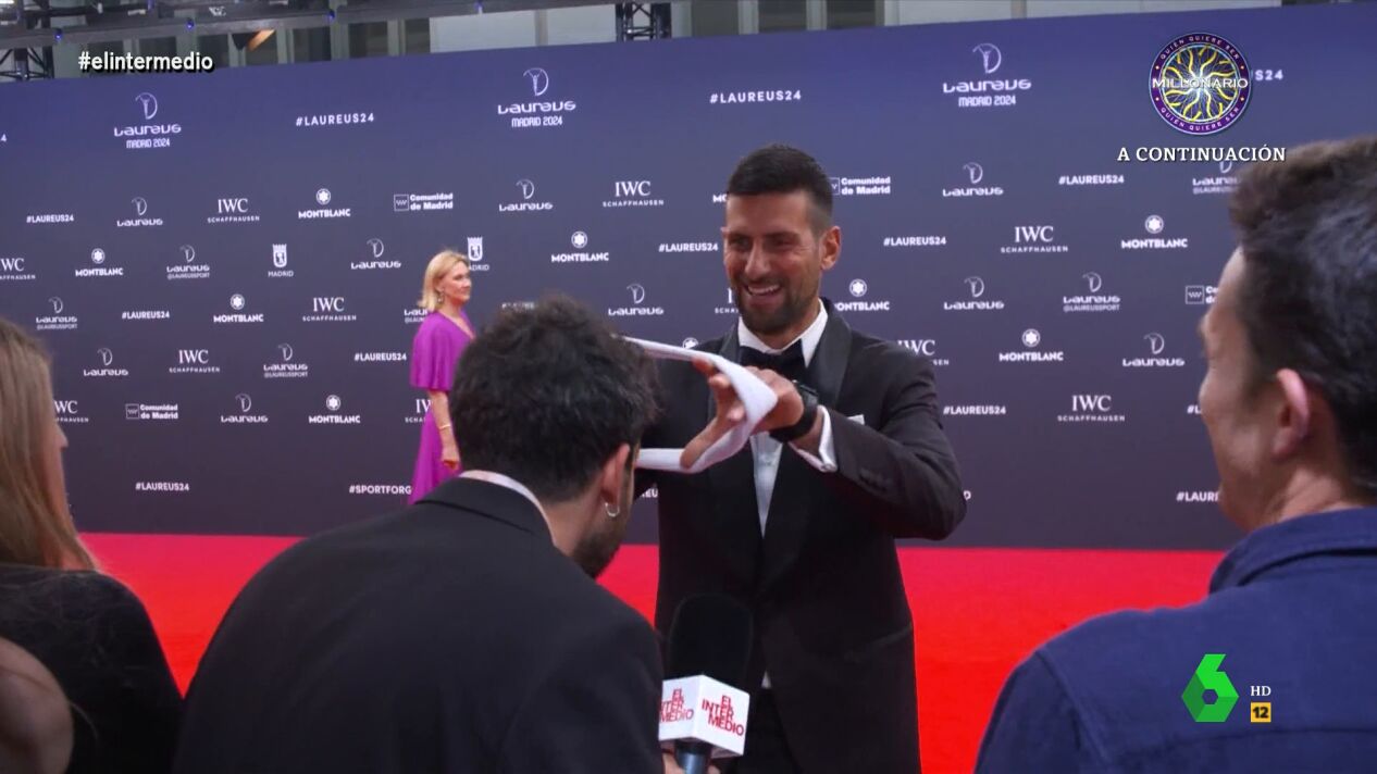 El tenista se ha puesto la cinta primero y, después, se la ha colocado al reportero, que ha aprovechado, además, para pedir que se la firmara. "Acabo de empezar en el tenis", le cuenta. "Ha pasado Alcaraz, me ha 'fumao', ha pasado Nadal, me ha 'fumao', ¿quién no me ha 'fumao'? Djokovic. Que suene el himno de serbia", afirma el reportero. Isma, además, ya está pensando qué hará con la cinta: "A ver cuánto vale esto en Wallapop".