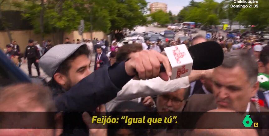 En la pradera de San Isidro el reportero también se ha encontrado una vez más con José Luis Martínez-Almeida, al que ha pedido que le presente a Alberto Núñez Feijóo, que le acompañaba por sorpresa. "¿Ha venido a encomendarse a San Isidro para el cónclave del PP?", le pregunta al líder popular, que le responde con un "igual que tú".