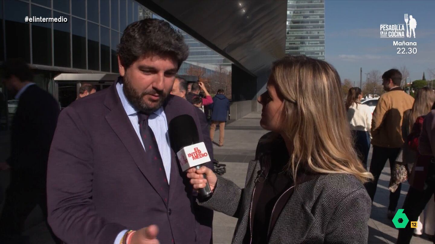 Entre los políticos que se han detenido a hablar con la reportera de El Intermedio se encuentra Fernando López Miras, presidente de la Región de Murcia, que en el vídeo sobre estas líneas defiende "aséptico", según Andrea, la gestión de Mazón al frente de la catástrofe: "Él es quien tiene que asumir la reconstrucción", sostiene sin embargo el barón del PP.