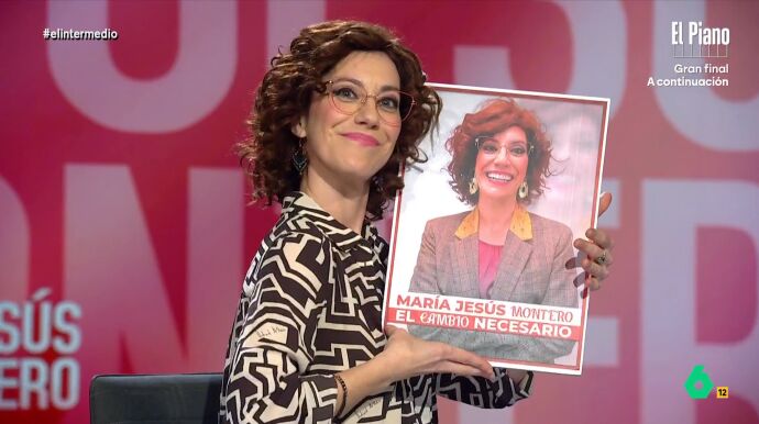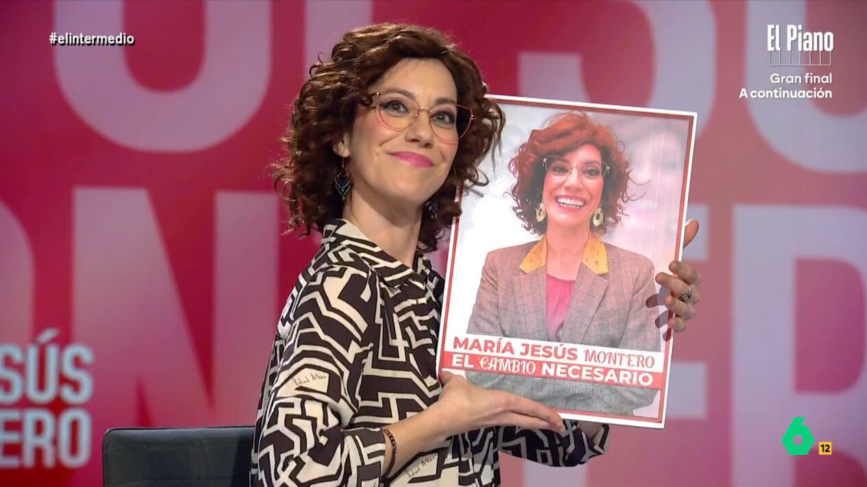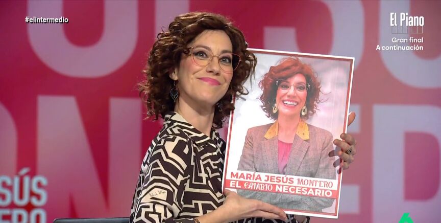 'María Jesús Montero', imitación de Cristina Gallego mediante, se niega a confirmar en El Intermedio su candidatura para liderar el PSOE andaluz, pero da pistas: ""Es mujer, pelo castaño rizado, muy capacitada y ya tiene un programa, el PADRE".